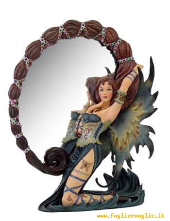 FATINA CON LUNGA TRECCIA E SPECCHIO h 26,5 cm