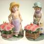 COPPIA DI BIMBI CON CARRETTO DI ROSE